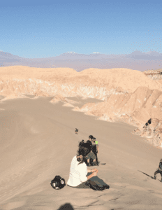 Stopping at a roaring river going over the path by a few feet as least, we’re forced to carry our bikes through. My arms shake with the weight of my bike above my head. The cold water goes to the top of my thighs. I wonder, if I slip, how fast I would go over the edge? Sopping wet and covered in mud, I’m grateful for dry ground again. I bark out a laugh as I see Mads’ pristine white hiking boots are now a dirty clay brown. My amusement dies and turns to alarm when our guide says, “this is where the path gets playful”. The road is steeper and full of bigger rocks, but also much wider. As my bike begins to pick up speed, I call out to Mads and Tristan that I’m coming through the middle. The rocks quickly grow larger and I’m going much too fast. I’m just telling myself, “the bike will make it through”, when I hit a large rock straight on. Shit. Vaulting over my handlebars I cartwheel through the air. Instinctively, I cover my head and try to tuck and roll out my landing. With a loud thud, I land on my back and reach out to grab my bike before it falls on me. It still does. After what I’m sure is just a second or two, I sit up, wide-eyed, and let out a manic laugh. Well, that hurt.