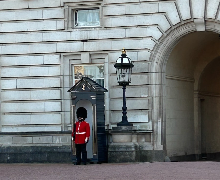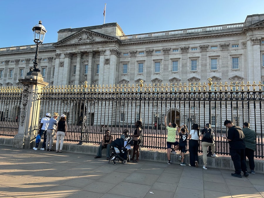 A lovely tree-lined stroll down Birdcage Walk led us to another highlight of the day – the world-renowned Buckingham Palace. Our excitement grew as we spotted it from a distance, its grandeur made even lovelier with all the British flags and colourful gardens leading up to it. I had seen it so many times in photos and news reports that I felt like I knew it, but it was awe-inspiring to be up close and imagine all the Royal events that have taken place there.