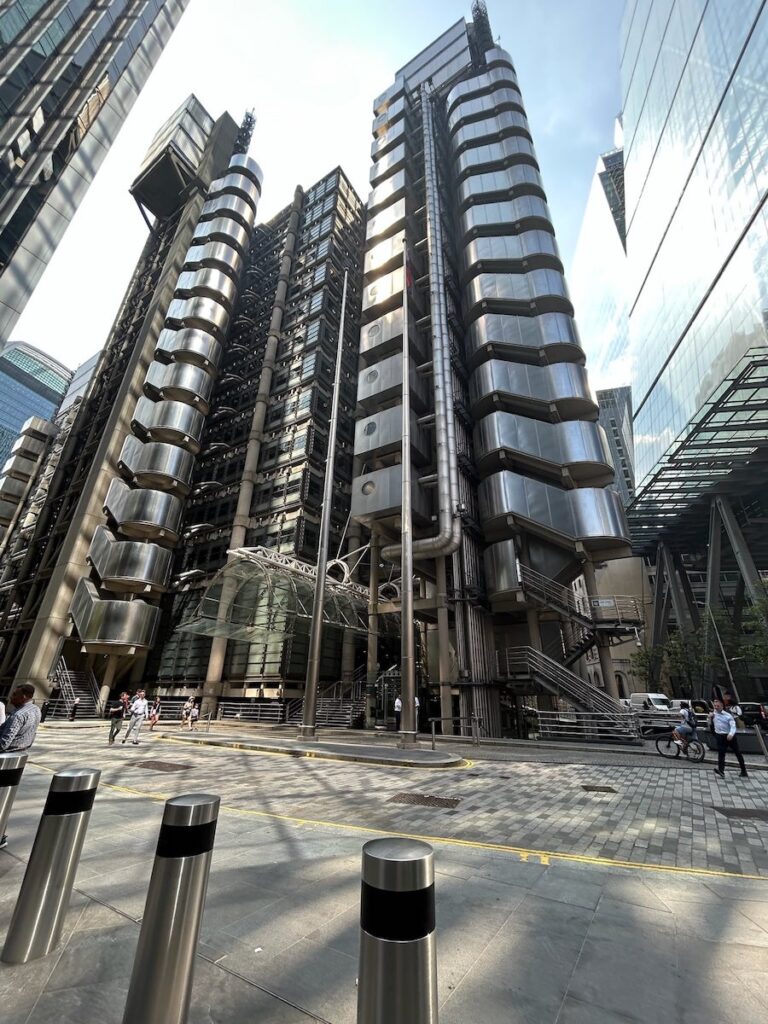 Coming back down to earth, literally, we wandered through the city, with interesting things to see along the way – sights such as the curious-looking ‘Inside-Out’ building, the nickname given to the Lloyd’s of London office building, and the Leadenhall Market, a beautiful Victorian-looking indoor/outdoor market. Leadenhall Market is another point of interest on Harry Potter Tours of London. It was mid-day, but the cafes, pubs, and outdoor patios at the market, and in fact all along our walk through the downtown, were full of well-dressed men and women enjoying a pint of beer.