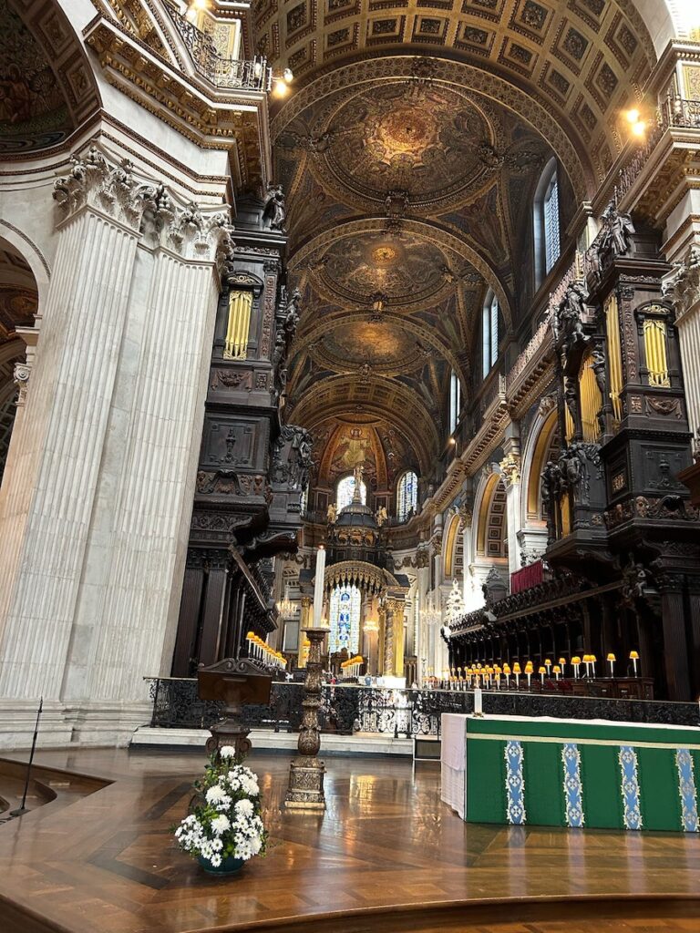 I suppose our next stop was technically a church, but it is immensely more grand than your average church. St. Paul’s Cathedral is famously known around the world as the site of many significant historical and Royal events, including the wedding of Prince Charles and Lady Diana. With the second largest dome in the world, behind only St. Peter’s Basilica in Rome, it is a massive and majestic cathedral. We arrived in time for their Evensong, and for the next hour listened to the most heavenly beautiful choral singing in the most spectacularly beautiful setting imaginable.